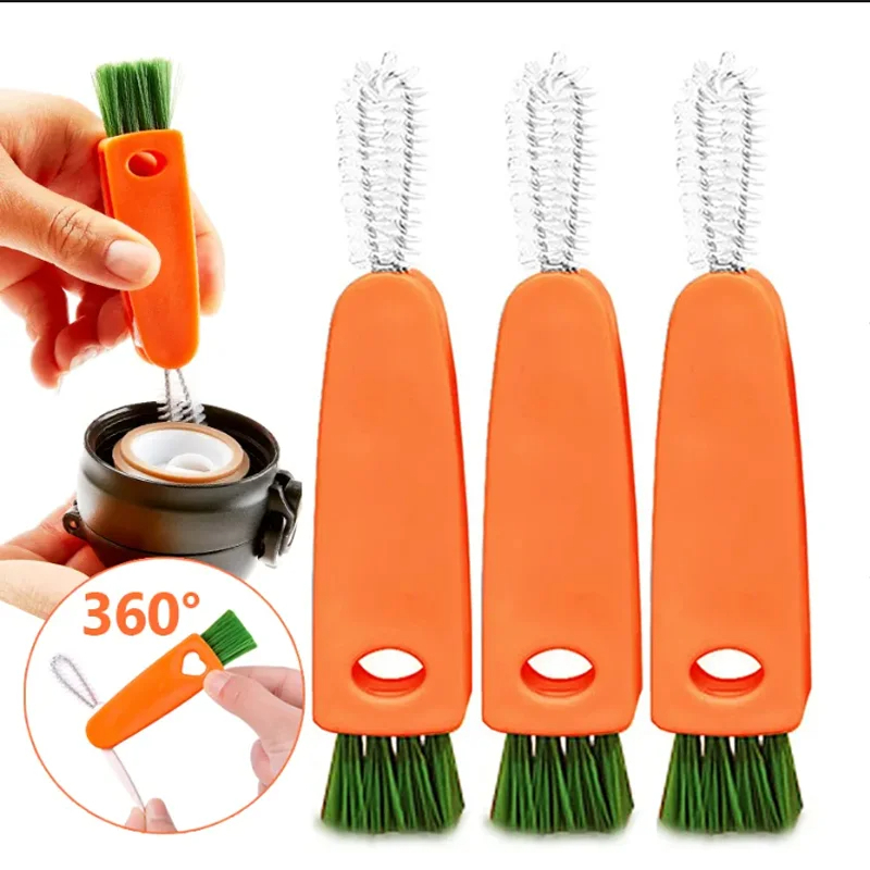 Carrot Cute Bottle Cap 3 in 1 Brush Tool Baby Cleaning Bottle Lid Accessories Kitchen Multifunctional Remove Gap Grooves